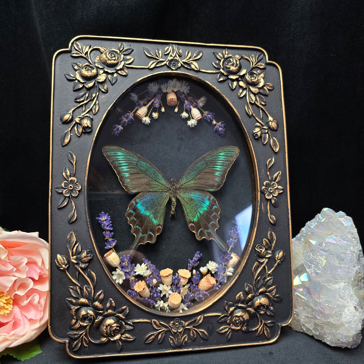 Finest Obituaries | Präparierter Schmetterling "Papilio Maackii Maackii" in Barockrahmen